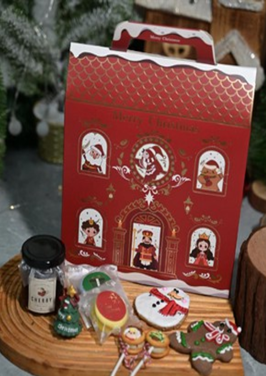 Includes:• Gingerbread man 1pc• Macaron 2pcs• Marshmallow sandwich biscuit 2pcs• Christmas meringue cookies 1pc• Christmas toy 1pc• Packaging
